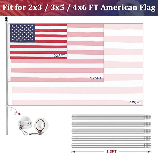 American Flag Pole Kit Made in USA, with 6FT 5 Section Flag Pole
