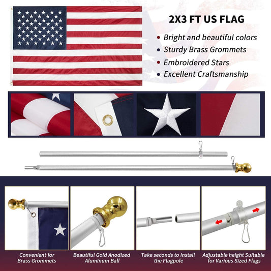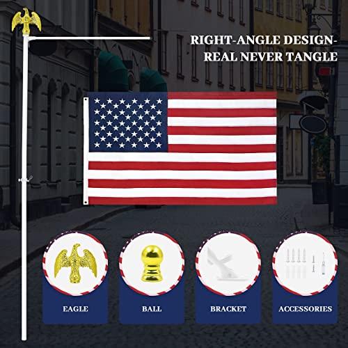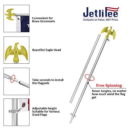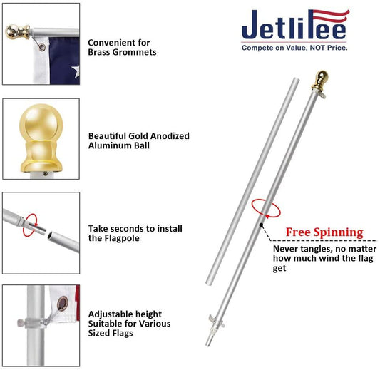 Jetlifee American Flag Kit, Including 100% Polyester US Flag, 6 ft Aluminum No Tangle Spinning Pole and 2-Position Flag Pole Bracket for House