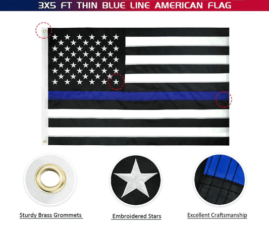 3×5 Ft Embroidery Black White Thin Blue Line American Flag Made in USA