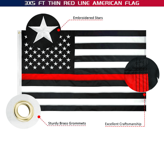 3×5 Ft Embroidery Black White Thin Red Line American Flag Made in USA