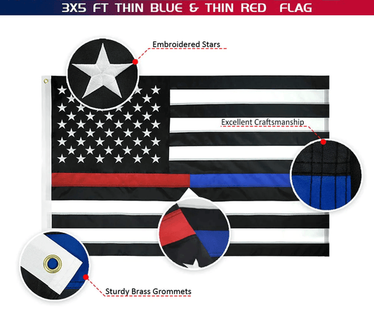 3×5 Ft Embroidery Thin Blue Line Thin Red Line Flag Made in USA